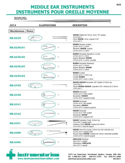 MIDDLE EAR INSTRUMENTS 63A