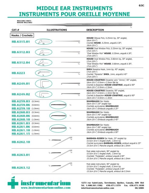 MIDDLE EAR INSTRUMENTS 63C