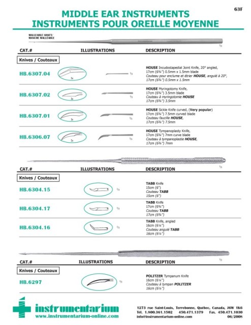 MIDDLE EAR INSTRUMENTS 63F