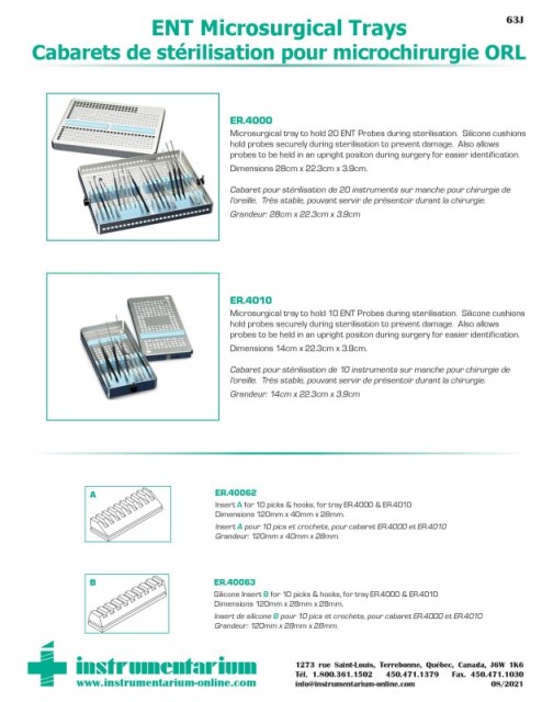 Microsurgical tray to hold 10 ENT Probes during sterilisation. Silicone cushions