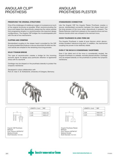 One of the challenges of middle ear surgery is to preserve as much Like the Angular CliP the Angular Plester Prosthesis creates a