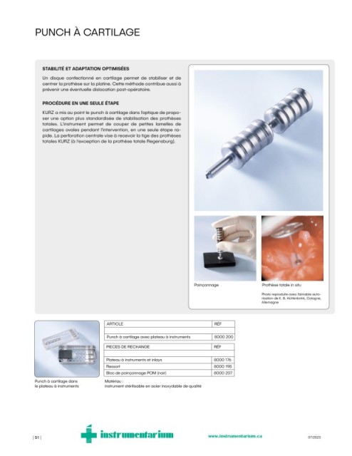 KURZ a mis au point le punch à cartilage dans l’optique de propo-